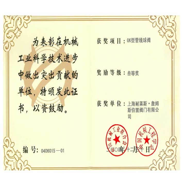 GK型管線球閥”獲機(jī)械工業(yè)科學(xué)技術(shù)